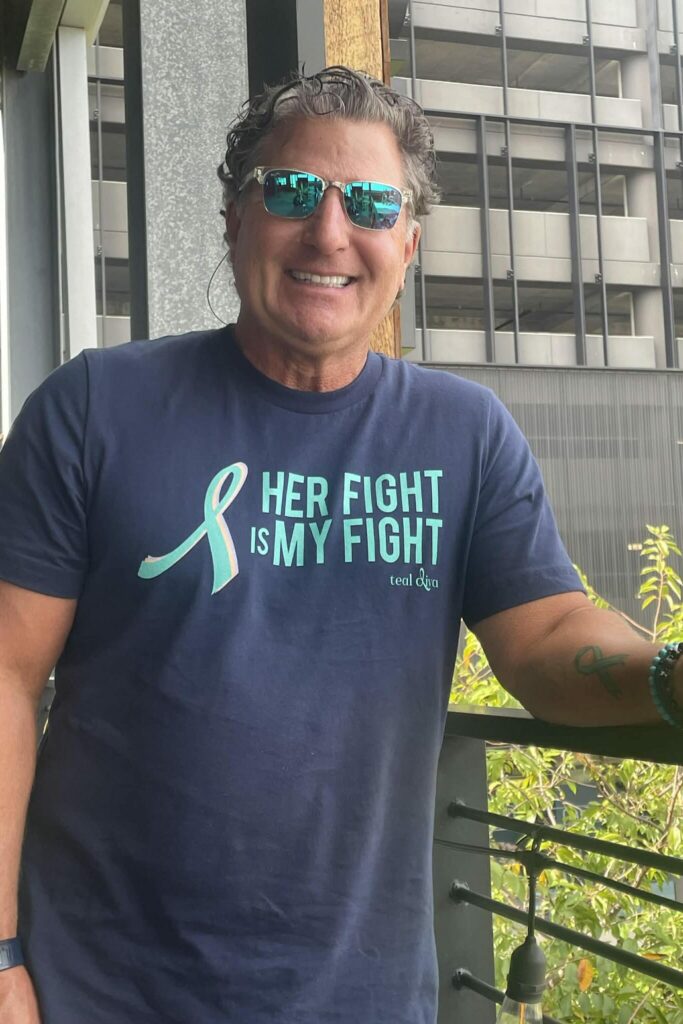 From the day we heard “you have cancer” we have fought this head on, together. Joe never misses appointments and some days I feel this may be harder on him than on me. My rock, my love… he wears his “her fight is my fight” shirt proudly and is the captain of my fight team! I love you, Joe!